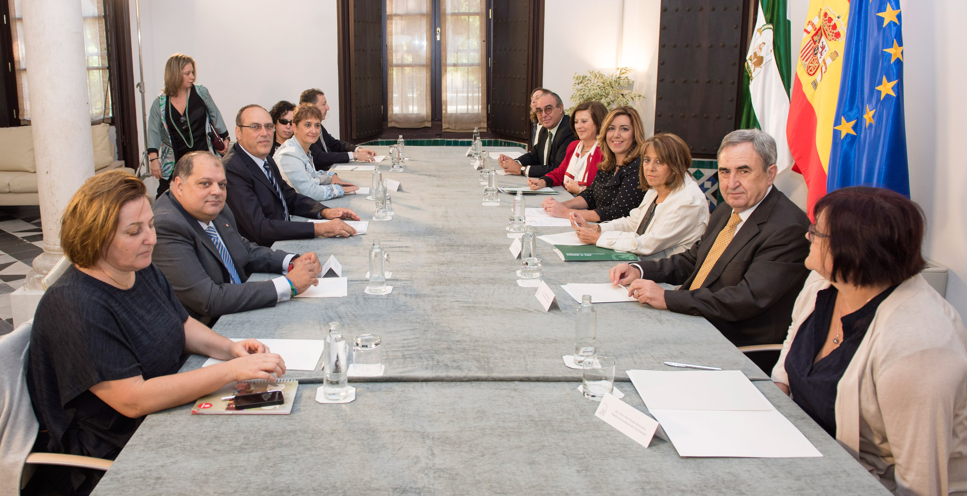 La presidenta de la Junta, Susana Díaz, ha presentado a la Mesa del Tercer Sector las cláusulas sociales y medioambientales que incorporará la Administración andaluza en la contratación y ha reiterado a los representantes de este organismo, que aglutina a 1.672 organizaciones sin ánimo de lucro, su apuesta por la concertación, con medidas como el concierto social recogido en el proyecto de Ley de Servicios Sociales.