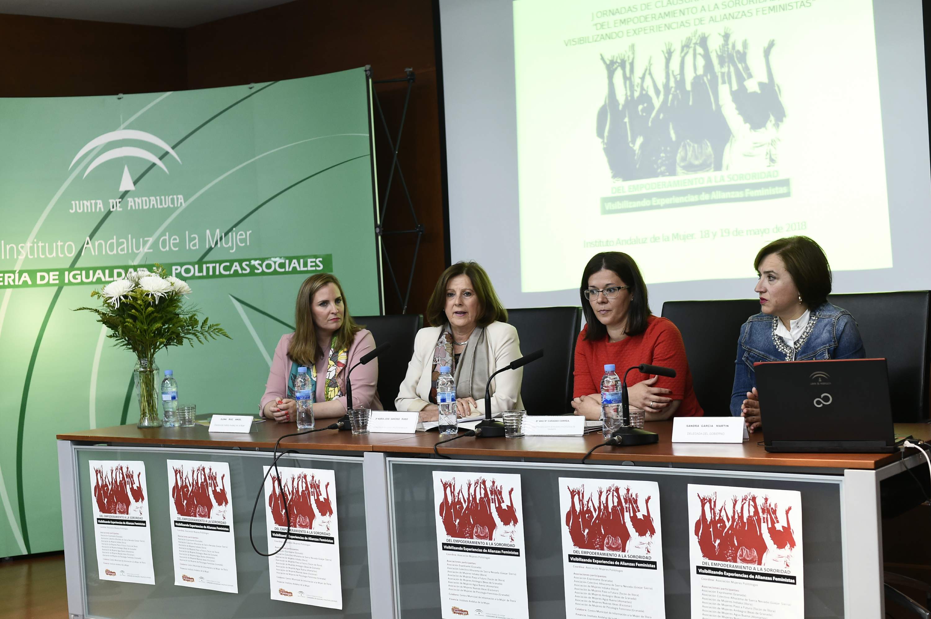 La consejera de Igualdad y Políticas Sociales, María José Sánchez Rubio ha participado esta mañana en la clausura de las jornadas del proyecto `Del empoderamiento a la sororidad”, un encuentro impulsado por la Asociación de Mujeres Politólogas con el fin de visibilizar las experiencias y el proceso individual y colectivo que se ha llevado a cabo durante los últimos 5 años por parte de un grupo de asociaciones de mujeres de la provincia de Granada, como estrategia transformadora de la realidad social. Se trata de sororidad, definida como la relación de hermandad y solidaridad entre las mujeres para crear redes de apoyo que empujen cambios sociales, para lograr la igualdad.