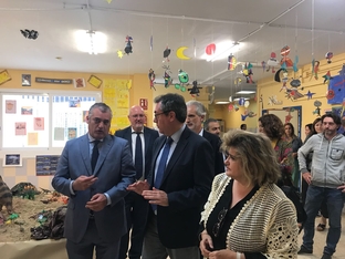 Acompañado también por el director del CEIP Miguel Rosa, la delegada territorial de Educación en Sevilla, María Francisca Aparicio; y el director gerente de la Agencia Andaluza de la Energía, Aquilino Alonso, el consejero de Empleo ha podido visitar las instalaciones de este colegio donde se va a mejorar la climatización, la iluminación y se va a intervenir desde el exterior para mejorar el comportamiento térmico del edificio, lo que aportará una mejora sustantiva al confort y bienestar del centro y sus ocupantes.