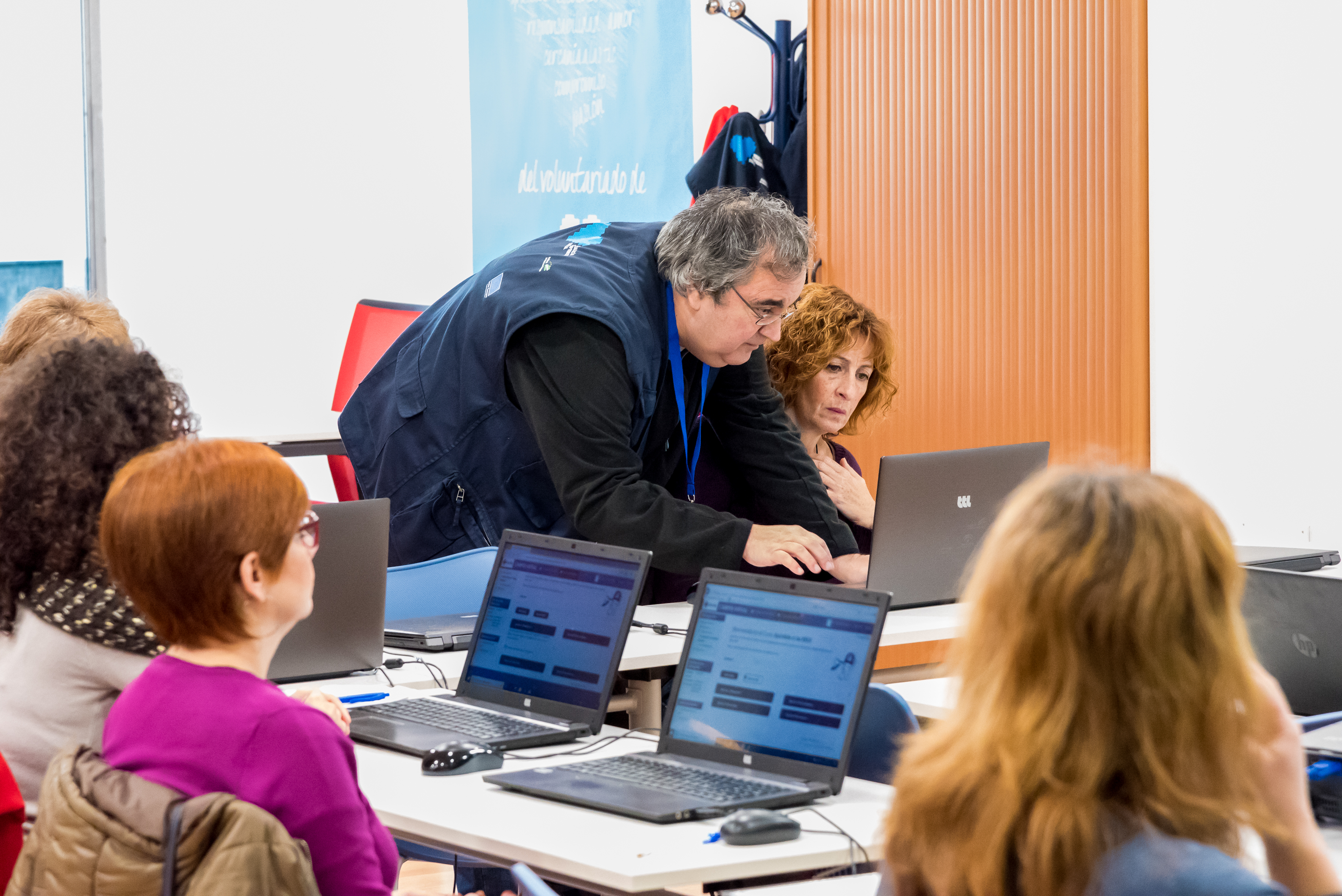 Estas formaciones se realizan en grupo y, entre otras temáticas, las personas voluntarias se encargan de iniciar en el uso de Internet y las redes sociales, el manejo de dispositivos tecnológicos o la compra online, de profundizar en el uso seguro de Internet, así como en favorecer la búsqueda de empleo. La mayoría de los usuarios de estos servicios, alrededor del 60%, son personas desempleadas.