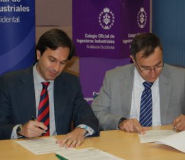 El secretario general de Innovación y Sociedad de la Información de la Consejería de Economía, Innovación y Ciencia, Juan María González, ha firmado un convenio de colaboración con el decano del Colegio Oficial de Ingenieros Industriales de Andalucía Occidental, Aurelio Azaña, para la incorporación de esta entidad como colaboradora del programa Andalucía Compromiso Digital.