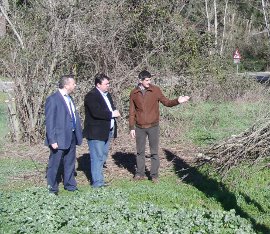 El delegado territorial de Economía, Innovación, Ciencia y Empleo, Eduardo Muñoz, visita en Galaroza los terrenos donde se ubicará la nueva estación de Inspección Técnica de Vehículos (ITV) que prestará servicio en la Sierra onubense. Está acompañado por el alcalde de la localidad, Antonio Sosa, y por el jefe de Área en la provincia de la empresa pública de Verificaciones Industriales de Andalucía SA, Jesús Peral.