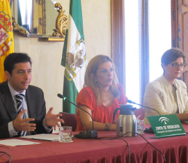 Director de la Agencia Andaluza de la Energía, Rafael Márquez; delegada del Gobierno, Sonia Ferrer; y delegada territorial de Economía, Innovación, Ciencia y Empleo, Adriana Valverde.