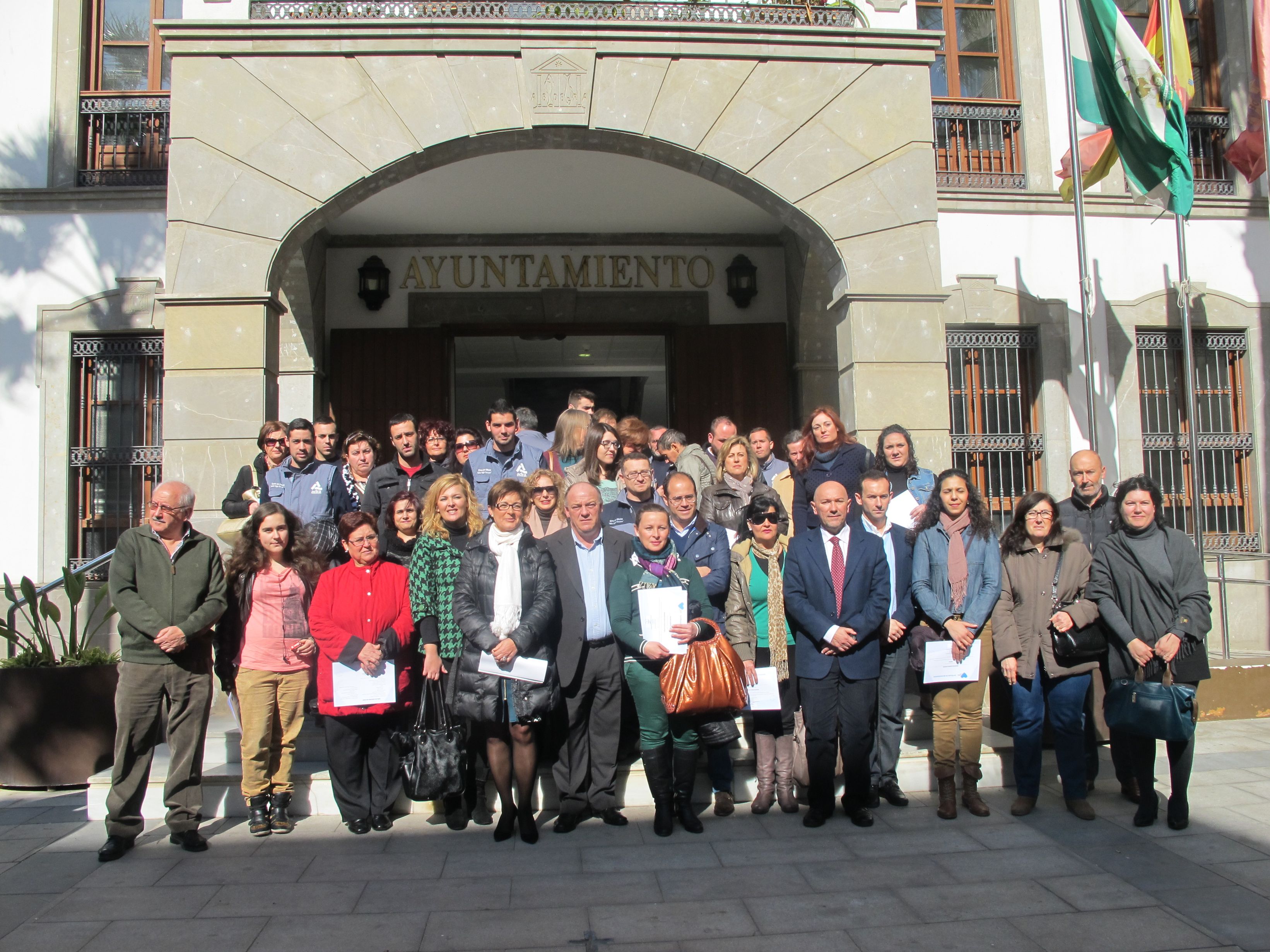 La delegada territorial de Economía, Innovación, Ciencia y Empleo, junto al alcalde de Adra, concejales y alumnos de cursos ACD.