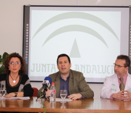 La delegada de Igualdad, Salud y Políticas Sociales, Isabel Baena, el delegado de Economía, Innovación, Ciencia y Empleo, José Ignacio Expósito y el director gerente del Hospital Infanta Margarita de Cabra, Jesús González.