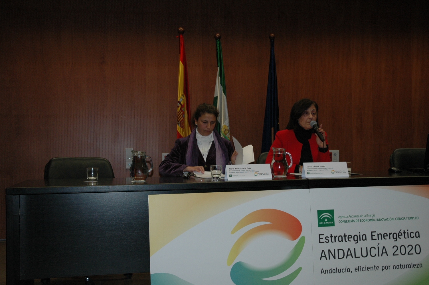 La directora general de Industria, Energía y Minas, María José Asensio, junto a la delegada territorial de Economía, Aurora Cosano, ha inaugurado hoy en Sevilla un encuentro provincial para presentar la Estrategia Energética de Andalucía 2014-2020 a los principales actores de la sociedad sevillana implicados en el ámbito energético (Cámaras de Comercio, asociaciones empresariales locales, comunidad universitaria, colegios profesionales, parques tecnológicos….). Así, se ha explicado a los asistentes el avance en el desarrollo de este importante documento para promover su participación y recoger sus aportaciones. La jornada ha contado también con la ponencia marco del experto en energía José Domínguez Abascal, Secretario General Técnico de Abengoa.