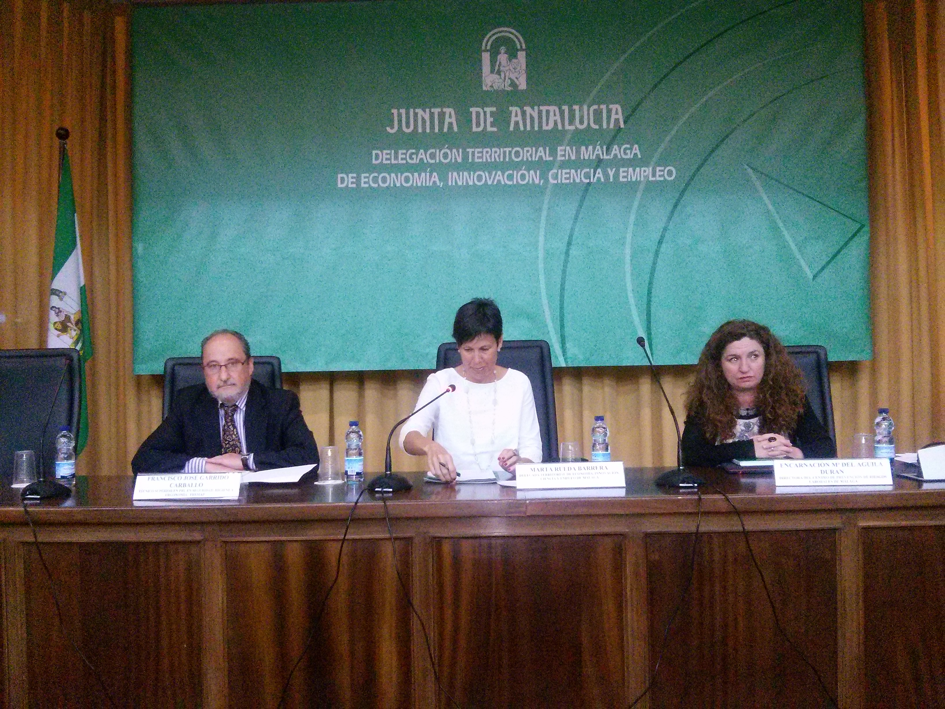 De dcha a izda Eugenio Muñoz, director de FREMAP, Marta Rueda, delegada de Economía, Innovación, Ciencia y Empleo, y Encarnación del Aguila, Directora del Centro de Prenvencion de Riesgos Laborales de Málaga.