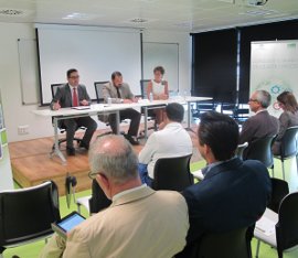 Las II Jornadas sobre nuevas tecnologías energéticas han contado con la participación de prestigiosos expertos y profesionales en el ámbito energético y la asistencia de 22 personas. Han participado como ponentes Guadalupe Pinna, directora de Fomento y Transferencia de Resultados del CTAER, que ha hablado sobre las nuevas tecnologías del sector; Eduardo Zarza, responsable de la unidad de I+D en sistemas solares de concentración de la Plataforma Solar de Tabernas, con una ponencia sobre actividades internacionales en I+D; Inés Gallego, expresidenta de WIN España y miembro de la Sociedad Nuclear Española, con una intervención sobre la energía nuclear como parte de la solución energética; y Amador Fernández, técnico de Extenda-Agencia Andaluza de Promoción Exterior, que ha explicado las posibilidades de internacionalización de las energías renovables.