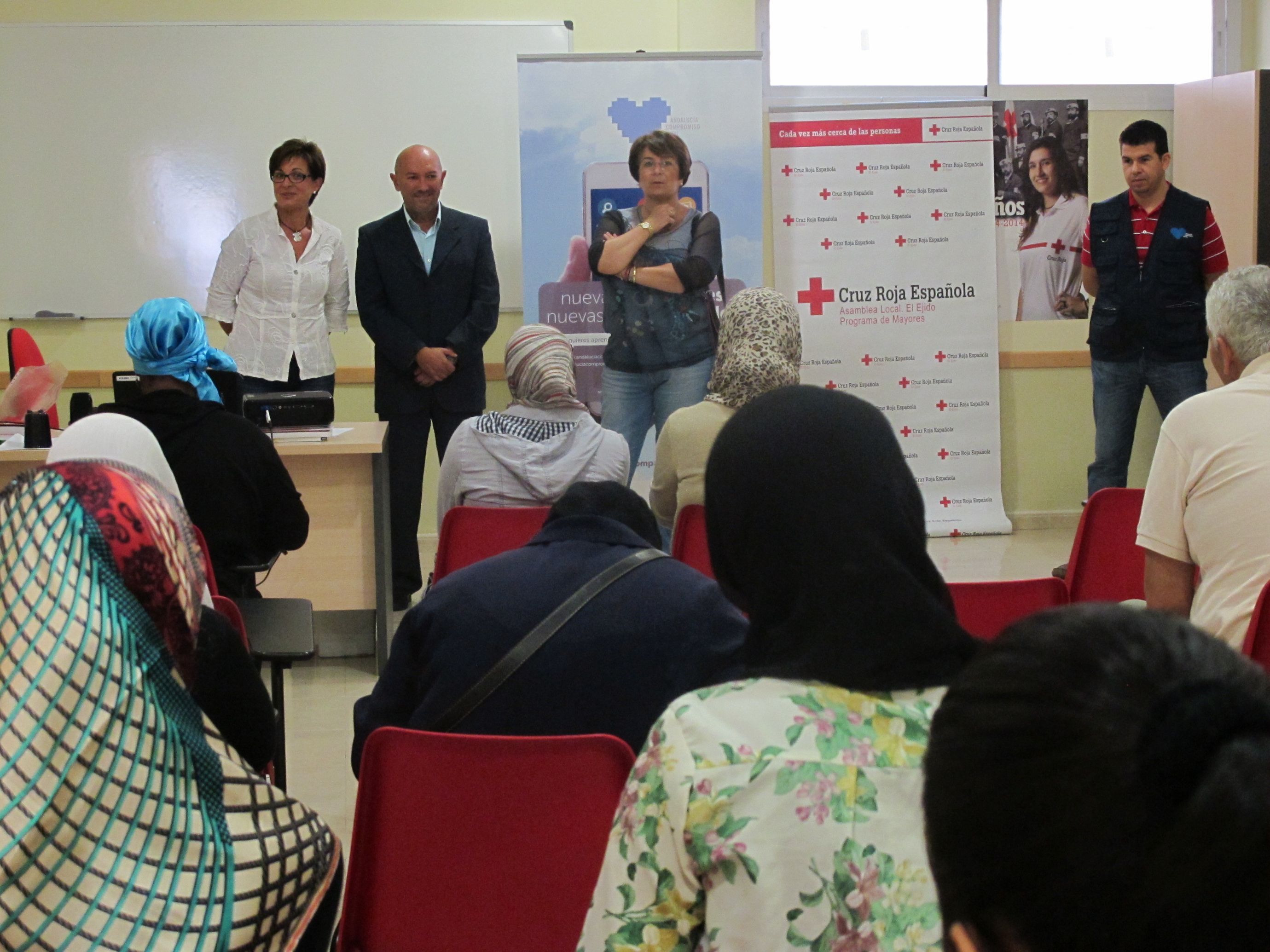 La delegada territorial de Economía, Innovación, Ciencia y Empleo, Adriana Valverde, ha inaugurado hoy en la sede local de Cruz Roja de El Ejido el curso ‘Búsqueda de empleo on line’, organizado por esta entidad en el marco del convenio que suscribió en enero de este año dentro de la iniciativa Andalucía Compromiso Digital con la Consejería de Economía, Innovación, Ciencia y Empleo, para desarrollar acciones de formación y sensibilización en nuevas tecnologías