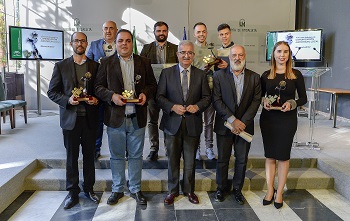 Jiménez Barrios, con los premiados en los V Premios Andalucía de Comunicación Audiovisual Local