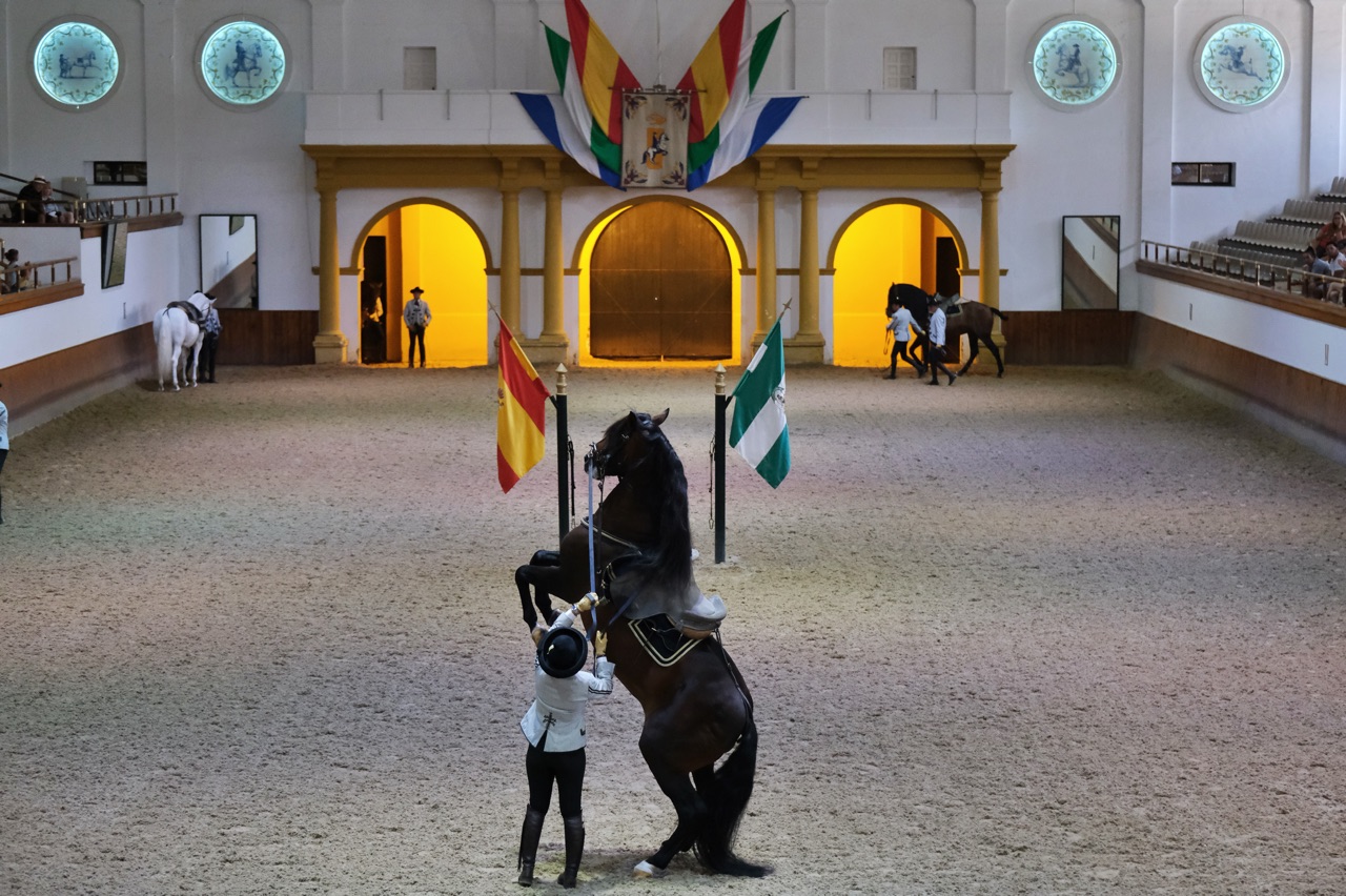 La actuación ‘Cómo bailan los caballos andaluces’, que se desarrollará en el picadero interior de la institución a las 12.00 horas, es un ballet ecuestre con música netamente andaluza y española y vestuario de gala a la usanza del siglo XVIII.