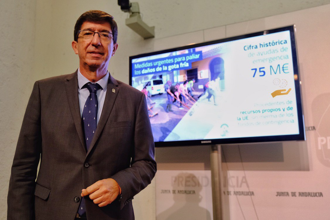 El Consejo de Gobierno ha aprobado destinar un total de 75 millones de euros en actuaciones para paliar los daños causados por la gota fría en Andalucía, que ha afectado, en mayor grado, a las provincias de Almería, Granada y Málaga. Se trata de un paquete de medidas gestionadas por las consejerías de Turismo, Regeneración, Justicia y Administración Local; de la Presidencia, Administración Pública e Interior; de Agricultura, Ganadería, Pesca y Desarrollo Sostenible, y de Fomento, Infraestructuras y Ordenación del Territorio.