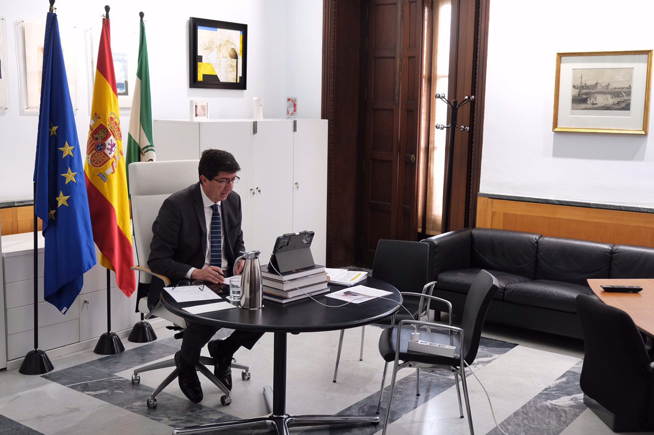 El vicepresidente de la Junta de Andalucía y consejero de Turismo, Regeneración, Justicia y Administración Local, Juan Marín, ha comparecido hoy de forma telemática ante la Diputación Permanente del Parlamento de Andalucía para informar de las actuaciones que ha llevado a cabo la Consejería que preside para paliar las consecuencias derivadas de la alerta sanitaria por la crisis del Covid 19.