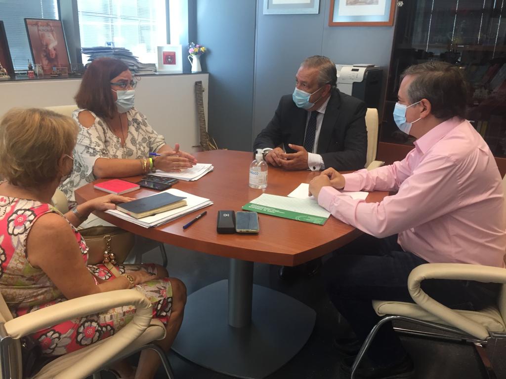 El director general de la Oficina Judicial y Fiscal y el delegado territorial, José Luis Delgado, reunidos con la secretaria coordinadora provincial en Almería