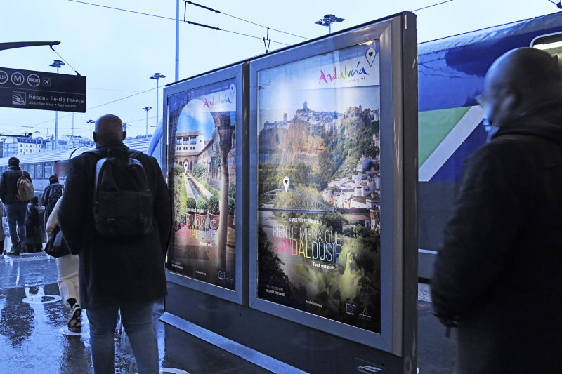 Además, del 14 al 20 de octubre, 125 paneles gráficos con imágenes de Andalucía se distribuirán en 30 estaciones de tren de la región de París, una acción que se lleva a cabo a través de Mediagares, que explota en exclusividad estos espacios. Se estima que esta actuación alcanzará a más de 3,7 millones de personas.