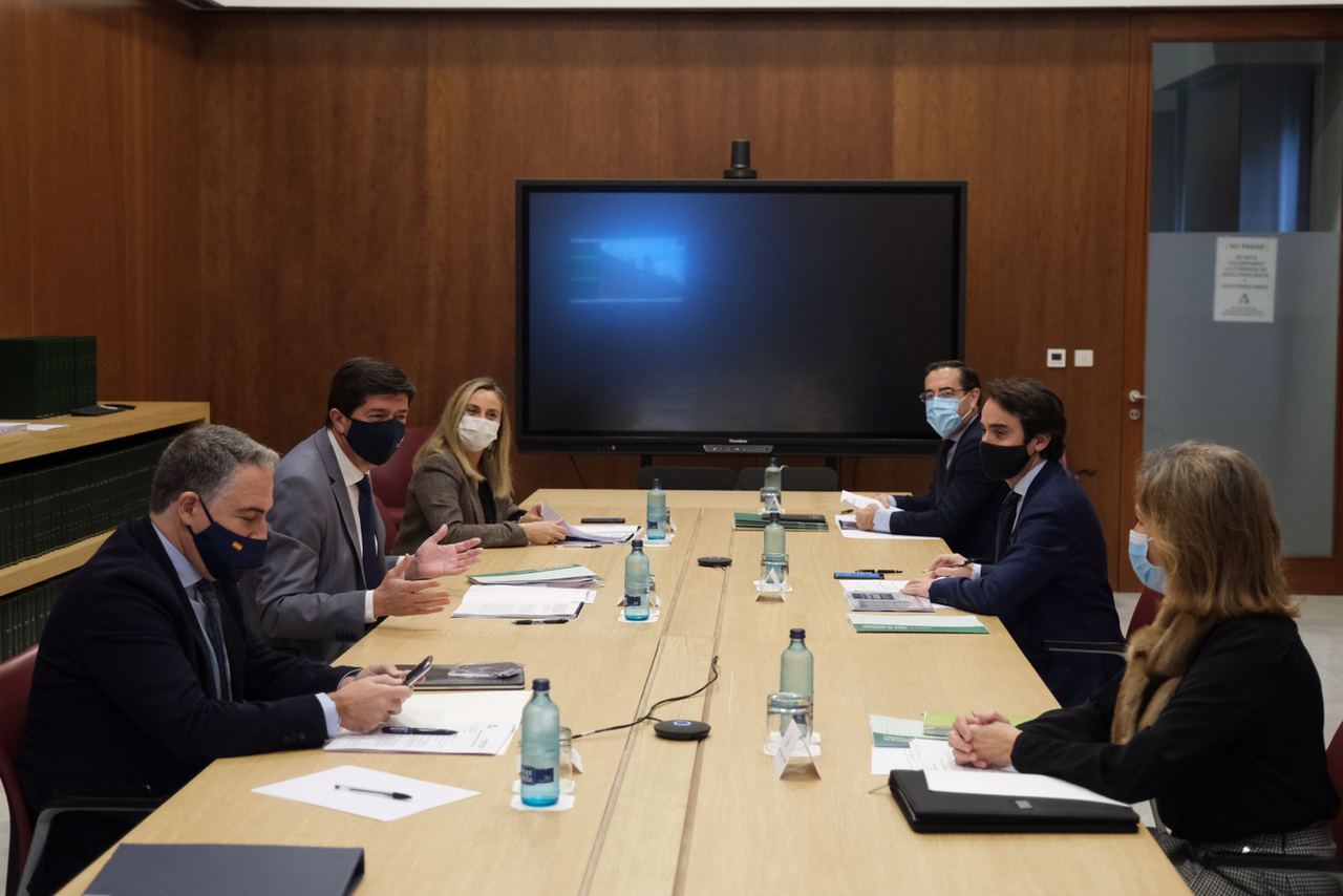 El vicepresidente de la Junta y titular de Turismo, Regeneración, Justicia y Administración Local, Juan Marín; consejero de Presidencia, Administración Pública e Interior, Elías Bendodo; y la consejera de Fomento, Infraestructuras y Ordenación del Territorio, Marifrán Carazo, han presidido hoy la constitución de la mesa de coordinación para la puesta en marcha de iniciativas que garanticen los derechos de los ciudadanos que sufran la ocupación ilegal de sus viviendas. La creación de esta mesa es un paso importante para que, tal y como está previsto, el próximo 1 de enero de 2021 empiecen a funcionar en las distintas delegaciones provinciales de la Consejería de Fomento el Sistema Andaluz de Lucha contra la Ocupación y de Asesoramiento para la Protección de la Vivienda que resuelva las dudas de los afectados.