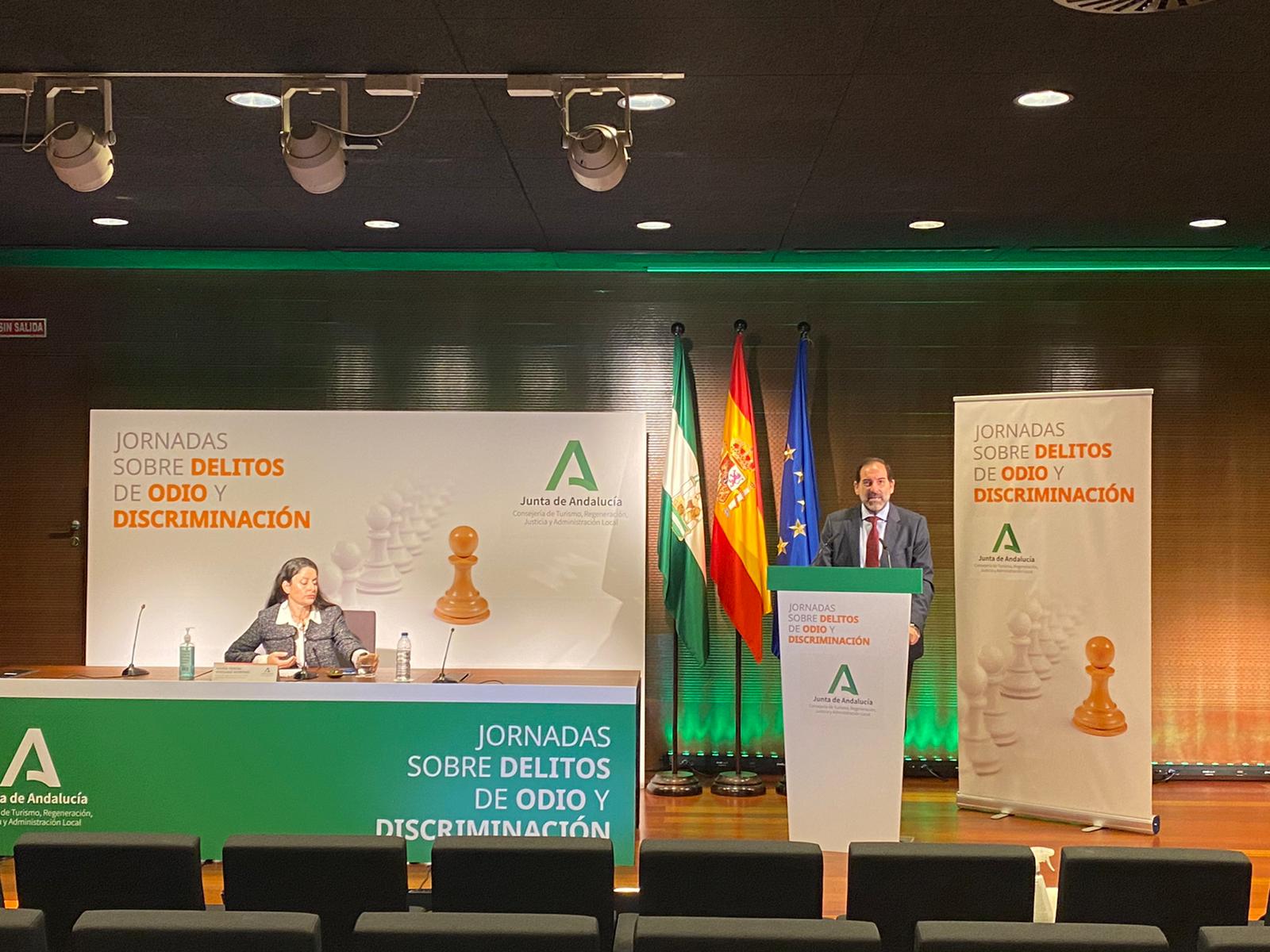 Más de 210 operadores jurídicos, fuerzas policiales y profesionales de los servicios institucionales de asistencia a las víctimas y asociaciones que trabajan con comunidades vulnerables participan desde hoy en las jornadas de formación sobre ‘Delitos de odio y discriminación’ organizadas -en formato online por las restricciones de la pandemia- por la Consejería de Turismo, Regeneración, Justicia y Administración Local para sensibilizar en la materia a quienes se encargan de proteger a los afectados por este tipo de delitos.