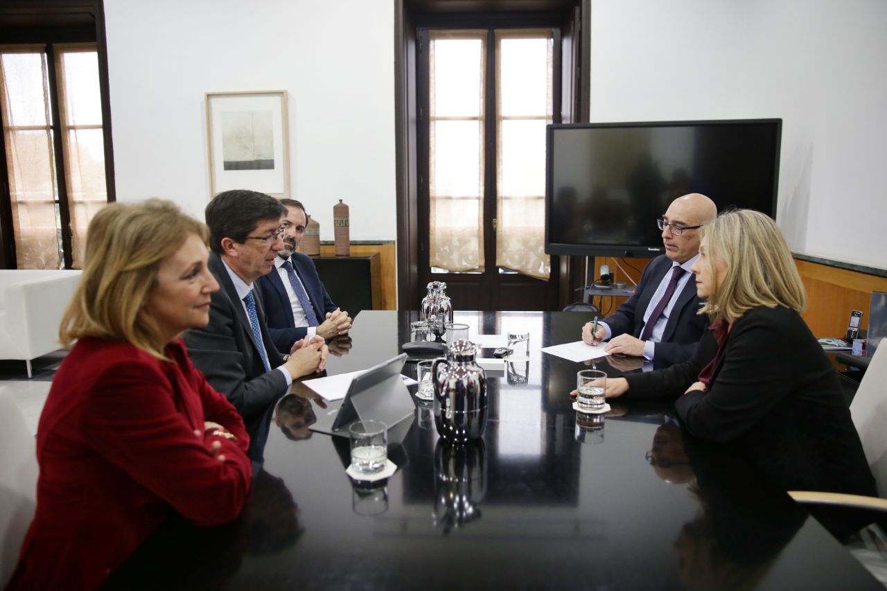 Juan Marín junto a la secretaria general para la Justicia y el director general de Justicia Juvenil y Cooperación, en una reunión con los presidentes de los consejos andaluces de colegios de abogados y procuradores
