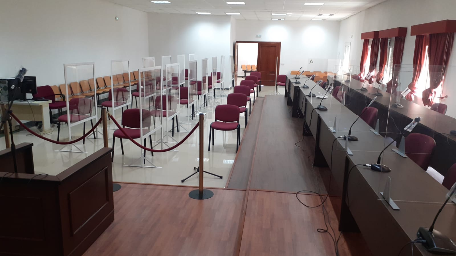 La Delegación Territorial de Turismo, Regeneración, Justicia y Administración Local en Cádiz ha invertido un total de 74.194 euros en la sala de la Sección Séptima de la Audiencia Provincial de Cádiz desplazada en Algeciras para adaptarla a la celebración de macrojuicios “con todas las medidas de seguridad”, garantizando la protección de todos los asistentes y cumpliendo el protocolo de prevención e higiene ante el COVID-19.