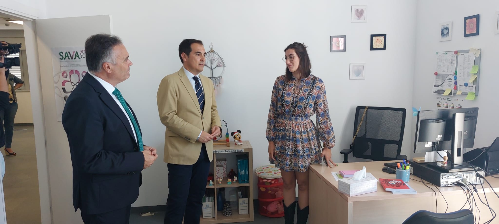 El consejero de Justicia, Administración Local y Función Pública, José Antonio Nieto, ha visitado hoy el Servicio de Asistencia a Víctimas de Andalucía (SAVA) de La Palma del Condado (Huelva), ubicado en la sede judicial de la localidad para atender a usuarios de los 11 municipios que conforman el partido judicial. Nieto ha destacado que la ampliación de este servicio fuera de las capitales desde 2018 ha acercado la atención que prestan los equipos profesionales a la población de las zonas rurales.