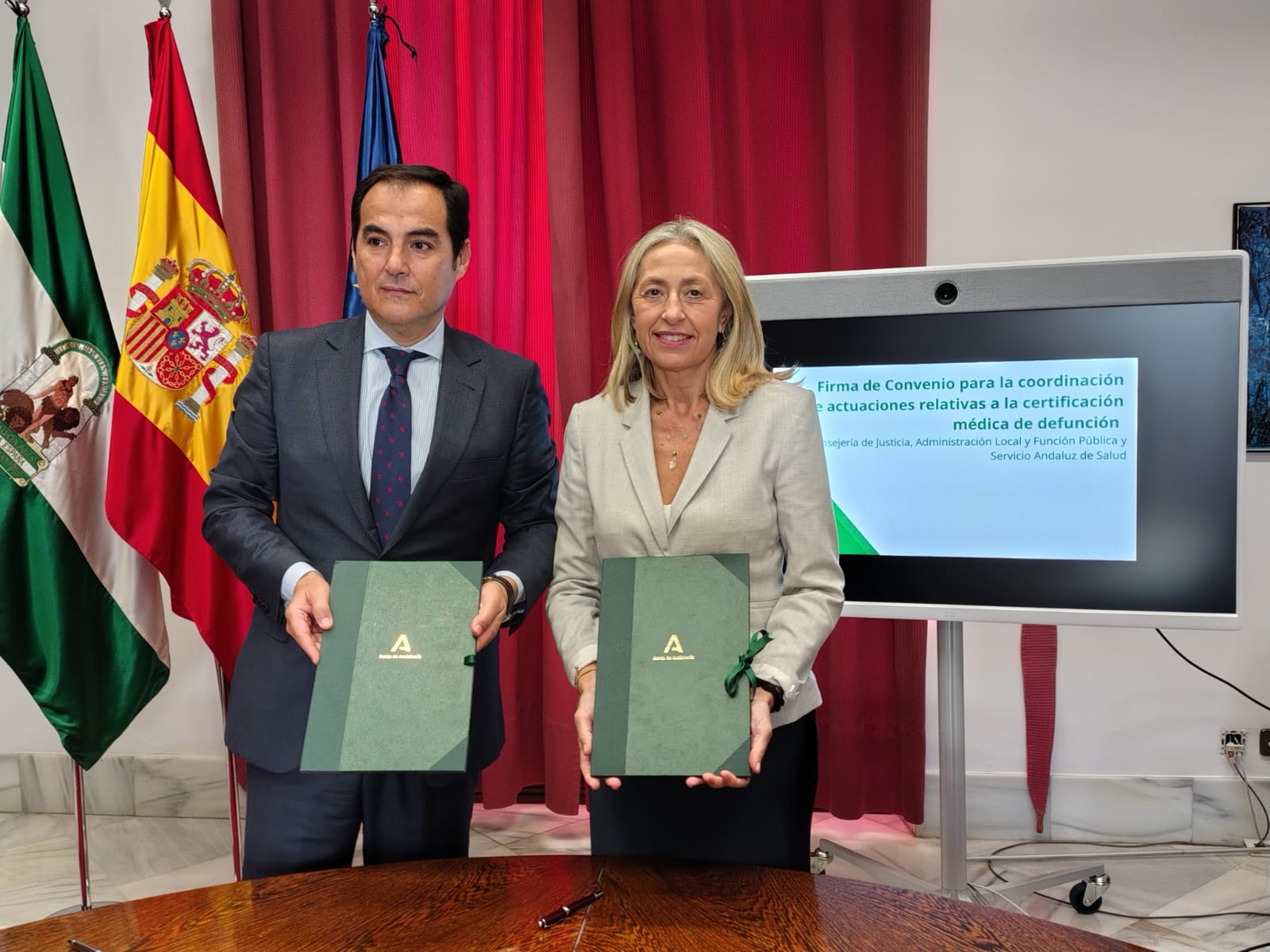 La Consejería de Justicia y el SAS firman un convenio para agilizar los certificados de defunción en casos de muerte natural y evitar judicializarlos