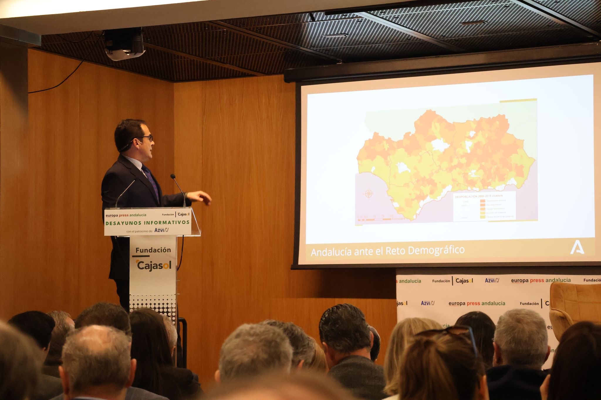 Nieto ha intervenido en el Foro de Europa Press ‘Andalucía ante el reto demográfico’, celebrado en la Fundación Cajasol que preside Antonio Pulido y patrocinado por Azvi. El alcalde de un pequeño municipio representativo de la Andalucía rural que con proyectos innovadores ha dado la vuelta a una tendencia a la despoblación, el regidor de Benarrabá (Málaga), Silvestre Barroso, ha sido el encargado de presentar al consejero, de quien ha destacado su visión política para ver el reto demográfico como un tema “de presente” y defender que “vivir en un pueblo puede ser una elección de vida y no una falta de alternativas”.