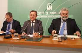 El consejero ha subrayado que este convenio supone un paso más del Gobierno andaluz para seguir avanzando en la cooperación con todas las instituciones y estamentos judiciales para garantizar el cumplimiento de la legalidad y reforzar la protección de aquellos valores que son estratégicos para el futuro de Andalucía.