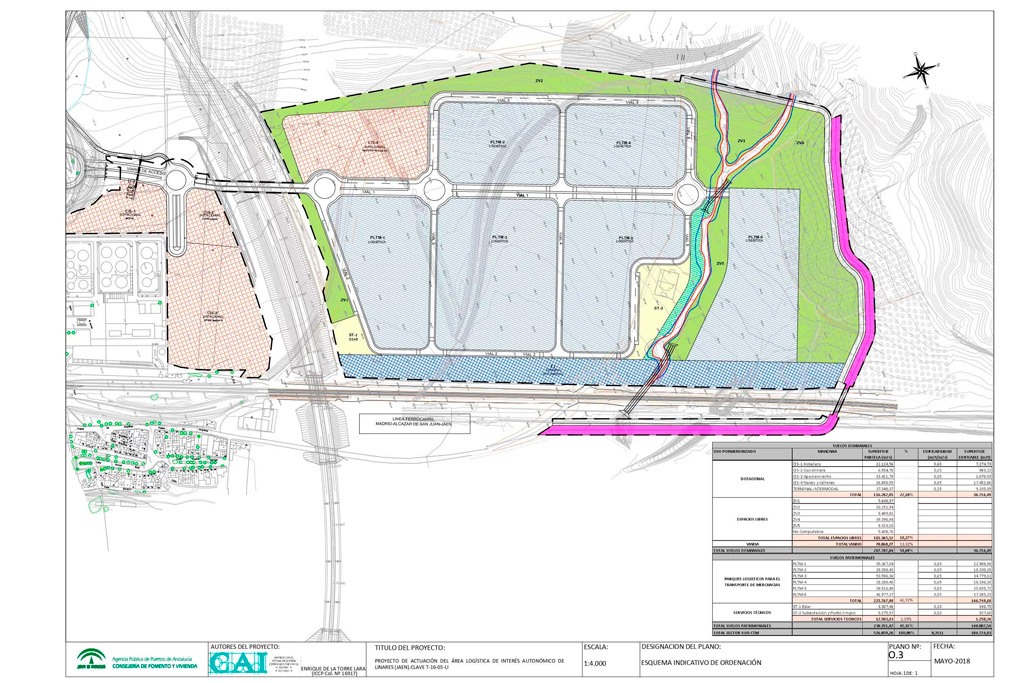 Situada en la llamada puerta de Andalucía, el Nodo Logístico de Jaén contará con tres actuaciones sumando un total de 180 Ha. de superficie se estructura en tres ámbitos bien diferenciados, Andujar, Bailén y Linares, sin continuidad espacial, pero funcionalmente integrados y gestionados conjuntamente por Red Logística de Andalucía S.A.