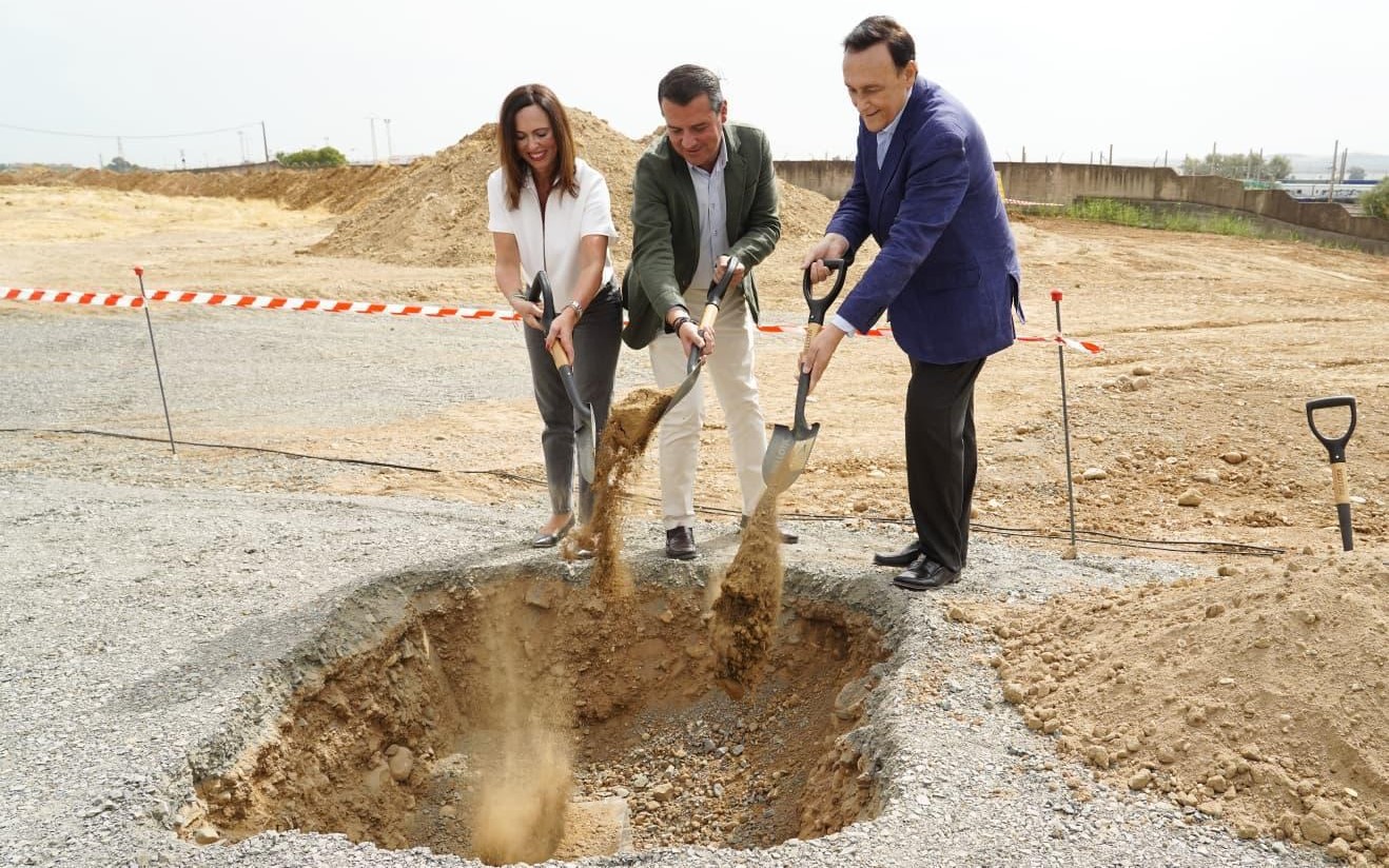 La consejera de Fomento, Articulación del Territorio y Vivienda, Rocío Díaz; el consejero de Universidad, Innovación e Investigación, José Carlos Gómez Villamandos, y el alcalde de Córdoba, José María Bellido, han colocado este mediodía la primera piedra de las obras de urbanización de la tercera fase del área logística de Córdoba, que contará con una inversión de 4,2 millones de euros.