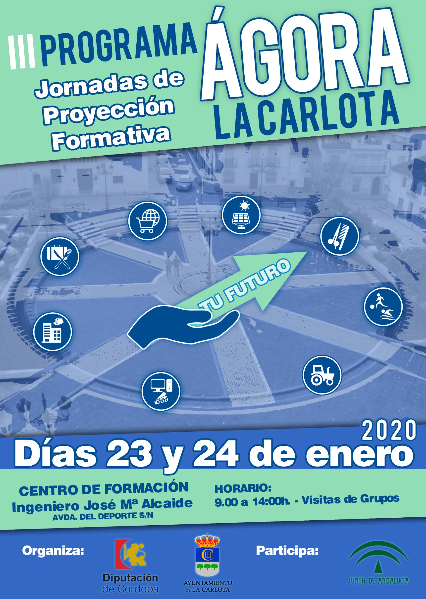 El Servicio Andaluz de Empleo participará, los días 23 y 24 de enero, en la III edición del 'Programa Ágora La Carlota 2020: Jornadas Proyección Formativa', una iniciativa organizada por la Diputación de Córdoba y el Ayuntamiento de La Carlota que tendrá lugar en el Centro de Formación Ingeniero José María Alcaide, en la avenida del Deporte s/n en La Carlota.