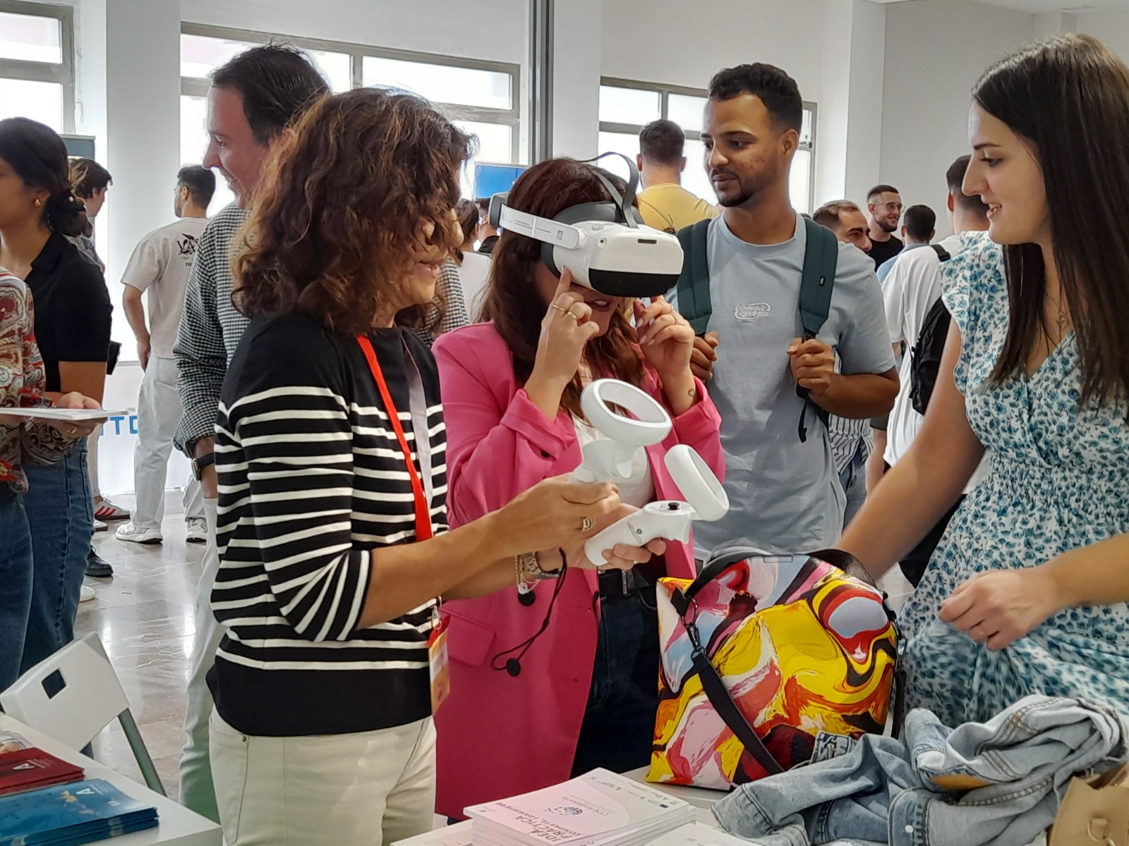 El Servicio Andaluz de Empleo (SAE), adscrito a la Consejería de Empleo, Empresa y Trabajo Autónomo, entrena a estudiantes de la Universidad de Jaén (UJA) mediante unas gafas de realidad virtual para mejorar sus competencias profesionales en el proceso de búsqueda de empleo, un proyecto innovador en materia de reclutamiento y selección de personal. Así lo ha subrayado la delegada territorial de Empleo, Empresa y Trabajo Autónomo, Ana Mata, en la inauguración de la Feria de Empleo de la UJA 2024, a la que a su vez han asistido el rector de la UJA, Nicolás Ruiz. Durante las jornadas matutinas y vespertinas de hoy martes y de mañana miércoles, los universitarios podrán conocer, mediante un variado programa de ponencias y talleres, y a través de los expositores de más de 40 empresas y entidades, la realidad empresarial y laboral de la provincia.