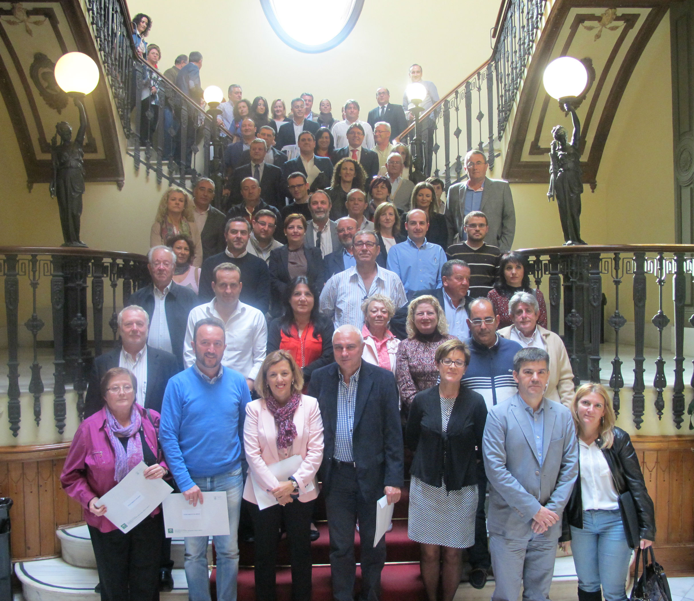 Las delegadas del Gobierno y de Economía junto a alcaldes y concejales tras la entrega de resoluciones de Emple@30+.