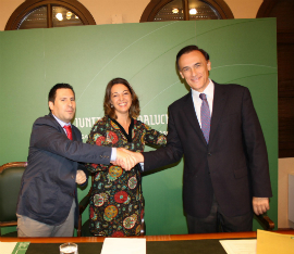 De izquierda a derecha, el delegado de Economía, la delegada del Gobierno y el rector de la UCO