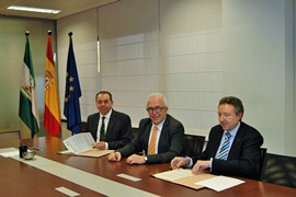 La firma la han llevado a cabo el secretario general de Innovación, Industria y Energía, Javier Castro, y el delegado territorial de la ONCE en Andalucía, Cristóbal Martínez, ante la presencia del consejero. Con la adhesión de la ONCE al programa Andalucía Compromiso Digital, se cubre un colectivo muy importante de población para la atención del programa, que entre sus objetivos tiene la lucha contra la exclusión social y digital.