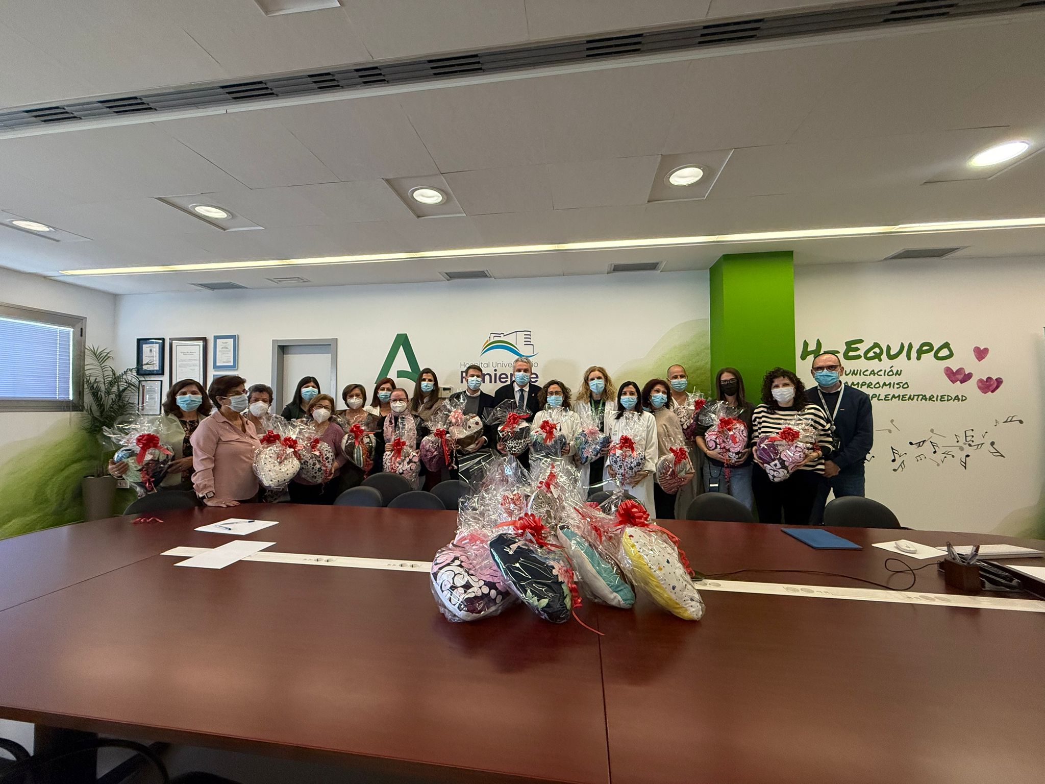 La Delegación Territorial de Inclusión Social, Juventud, Familias e Igualdad en Almería ha hecho entrega hoy de medio centenar de ‘Almohadas del Corazón’ al Hospital Universitario Poniente del Servicio Andaluz de Salud (SAS) de la Junta de Andalucía. Las piezas, destinadas a pacientes intervenidas de cáncer de mama, han sido elaboradas en el Taller de Manualidades del Centro de Participación Activa (CPA) de Personas Mayores de El Ejido.