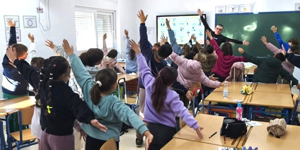 Talleres dirigidos al alumnado de tercer curso de Educación Primaria, orientados a la promoción del movimiento y de la práctica de ejercicio físico desde edades tempranas. Estas sesiones, de naturaleza teórico-práctica, incorporan dinámicas participativas, actividades lúdicas y recomendaciones aplicables a la vida cotidiana del alumnado. De manera paralela, se imparte formación de carácter eminentemente práctico al conjunto del profesorado de los centros educativos de ambas poblaciones, abordando contenidos relacionados tanto con los hábitos de salud como con los primeros auxilios.