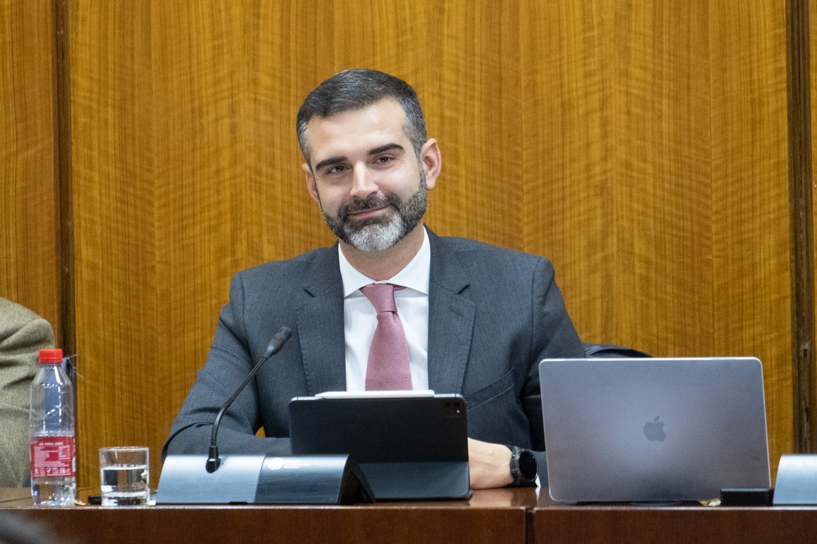 El consejero de Sostenibilidad, Medio Ambiente y Economía Azul, Ramón Fernández-Pacheco durante una comisión parlamentaria en el Parlamento de Andalucía.