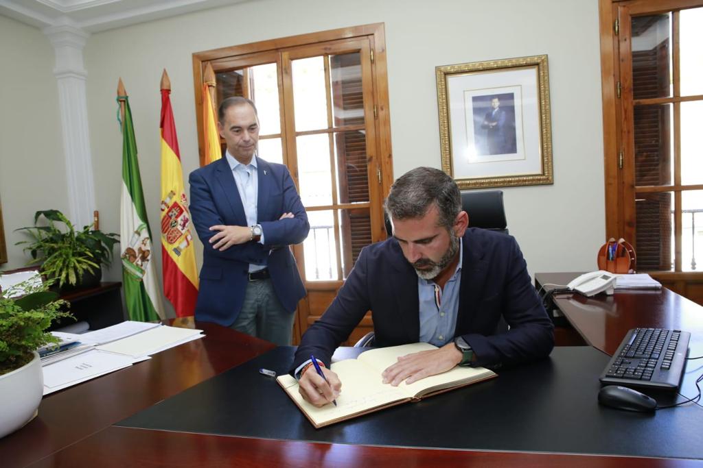 El consejero de Sostenibilidad, Medio Ambiente y Economía Azul, Ramón Fernández-Pacheco, firma en el libro de honor del Ayuntamiento de Benalmádena