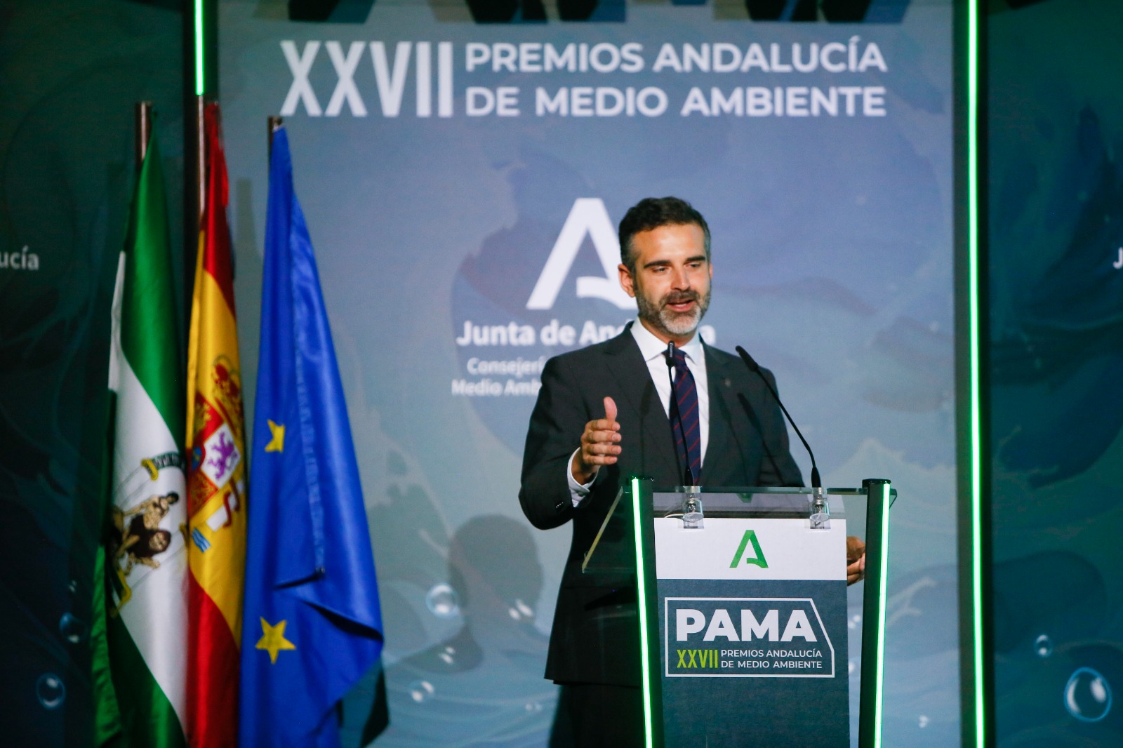 El consejero de Sostenibilidad durante los Premios Andalucía de Medio Ambiente 2023