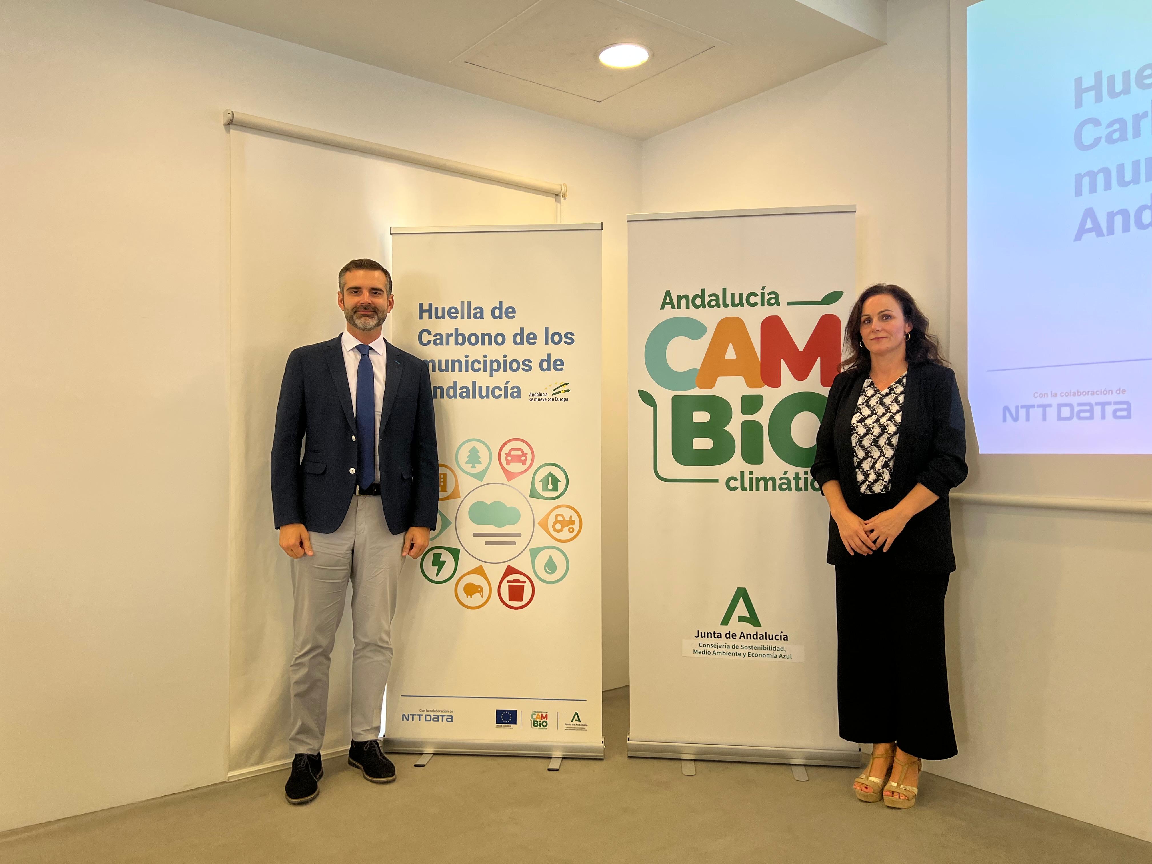 El consejero de Sostenibilidad y la secretaria general en la presentación de la aplicación de huella de carbono