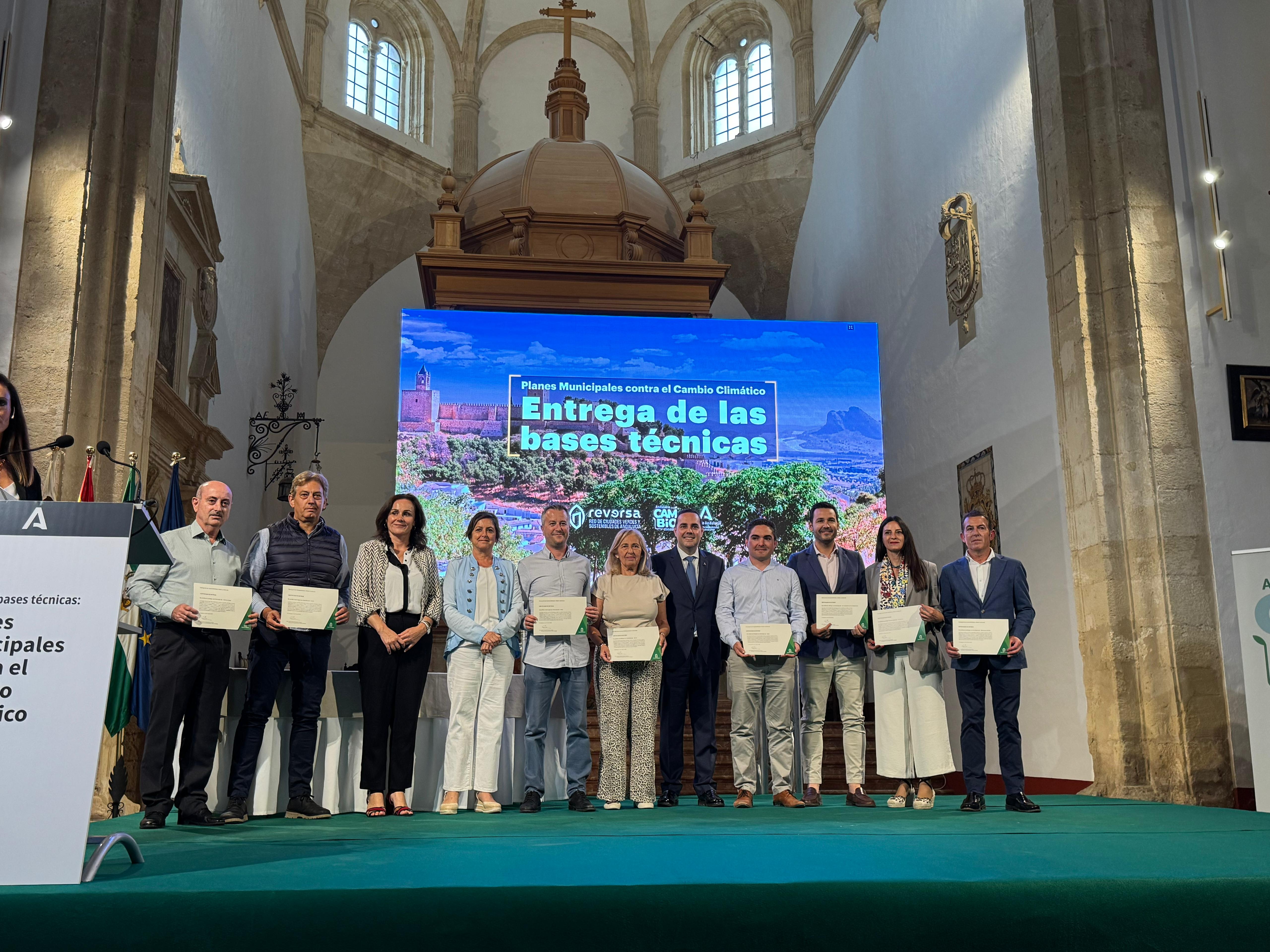 El acto ha contado con la asistencia del alcalde de Antequera, Manuel Jesús Barón, además de una representación de alcaldes de las ocho provincias andaluzas a los que se les ha entregado los PMCC; el viceconsejero de Sostenibilidad y Medio Ambiente, Sergio Arjona; la delegada del Gobierno de la Junta de Andalucía en Málaga, Patricia Navarro; la secretaria general de Medio Ambiente y Cambio Climático, María López Sanchís; la secretaria general de la Federación Andaluza de Municipios y Provincias, Yolanda Sáenz; la directora general de Sostenibilidad Ambiental y Economía Circula, Carmen Jiménez; los delegados territoriales de la Consejería; así como representantes de otras instituciones.