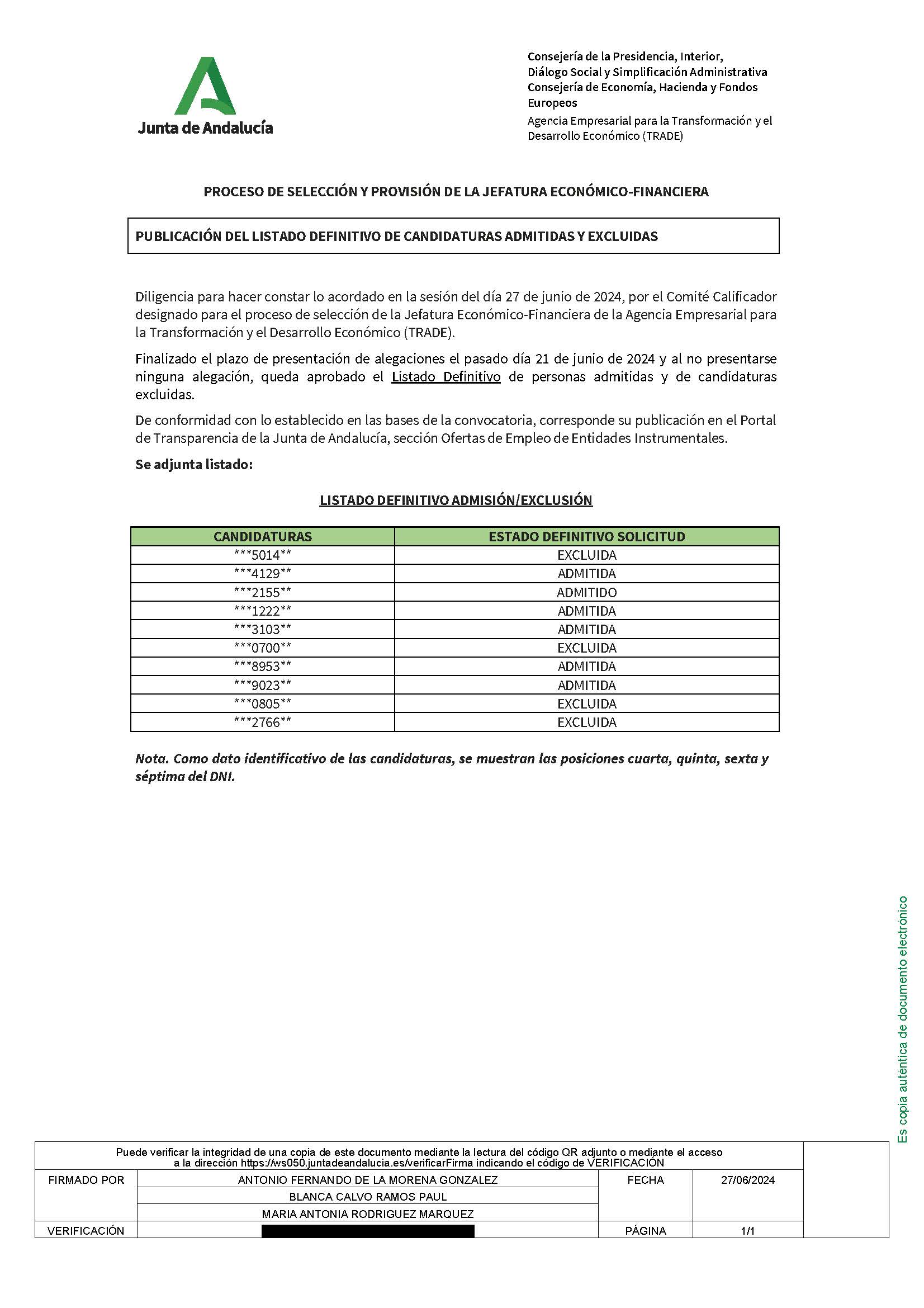 Oferta de empleo - Jefatura Económico-Financiera de la Agencia Empresarial para la Transformación y el Desarrollo Económico (TRADE)