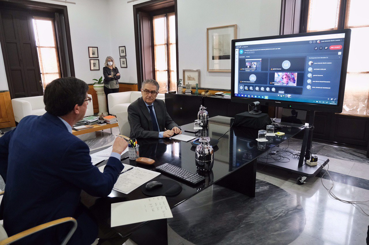 El vicepresidente de la Junta de Andalucía y consejero de Turismo, Regeneración, Justicia y Administración Local, Juan Marín, se ha reunido esta mañana, de forma telemática, con el presidente y miembros de la ejecutiva de Exceltur, organización formada por 28 de las más relevantes empresas de toda la cadena de valor turística. “Ha sido una cita importante para saber cuáles son las inquietudes y qué propuestas tienen los empresarios para retomar la actividad”, ha dicho Marín.