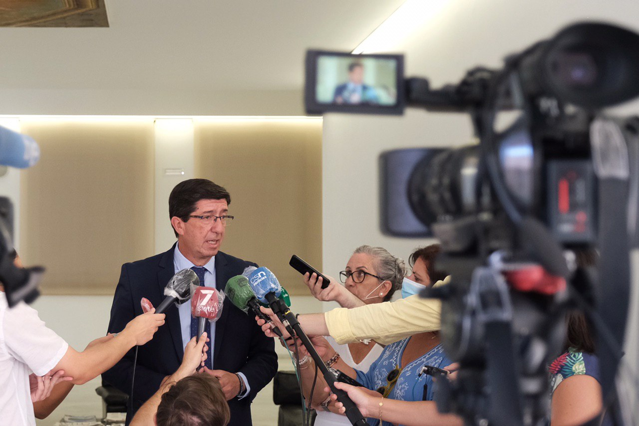 El vicepresidente de la Junta de Andalucía y consejero de Turismo, Regeneración, Justicia y Administración Local, Juan Marín, ha destacado hoy que Andalucía fue la comunidad que más turistas nacionales recibió durante el pasado mes de julio. “A pesar de la situación que vivimos, el destino Andalucía mantiene su potencial y su atractivo entre los viajeros españoles. Se ha demostrado que las acciones que llevamos a cabo con nuestro Plan de Choque han dado resultados. Aunque es evidente que los datos son malos, hay que tener en cuenta que partíamos de un turismo cero”.