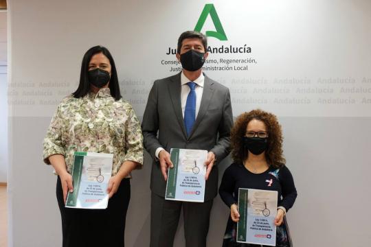 Juan Marín junto a la secretaria general de Regeneración, Racionalización y Transparencia; y la presidenta regional de CERMI
