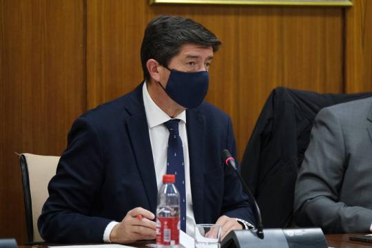 El vicepresidente de la Junta de Andalucía y consejero de Turismo, Regeneración, Justicia y Administración Local, Juan Marín, ha comparecido hoy en el Parlamento para dar cuenta de la gestión de los fondos europeos por parte del Ejecutivo. “Una de nuestras grandes apuestas al comienzo de la legislatura fue mejorar los niveles de ejecución de estas partidas y creo que las cifras lo demuestran”.