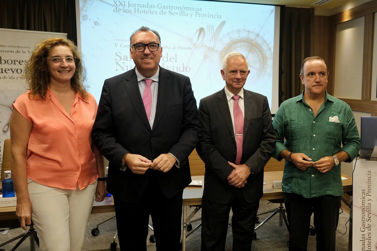 El consejero de Turismo, Cultura y Deporte, Arturo Bernal, ha presentado hoy la XXI edición de las Jornadas Gastronómicas de la Asociación de Hoteles de Sevilla y Provincia, que en esta ocasión se basarán en el Menú del V Centenario de la I Vuelta al Mundo “para buscar la diferenciación a través de la calidad y la excelencia”.
