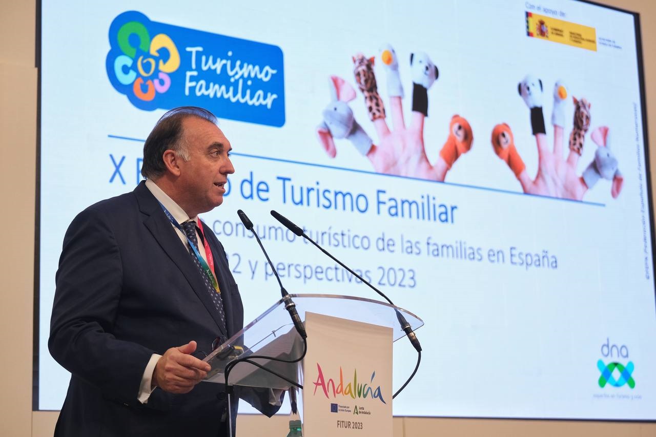 El consejero de Turismo, Cultura y Deporte, Arturo Bernal, ha anunciado en la presentación del X Estudio de Turismo Familiar con la Federación de Española de Familias Numerosas, en el marco de FITUR, que la Consejería está estudiando, junto con la Consejería de Inclusión, Juventud, Familias e Igualdad, medidas de apoyo que beneficien a las familias numerosas en sus actividades turísticas.