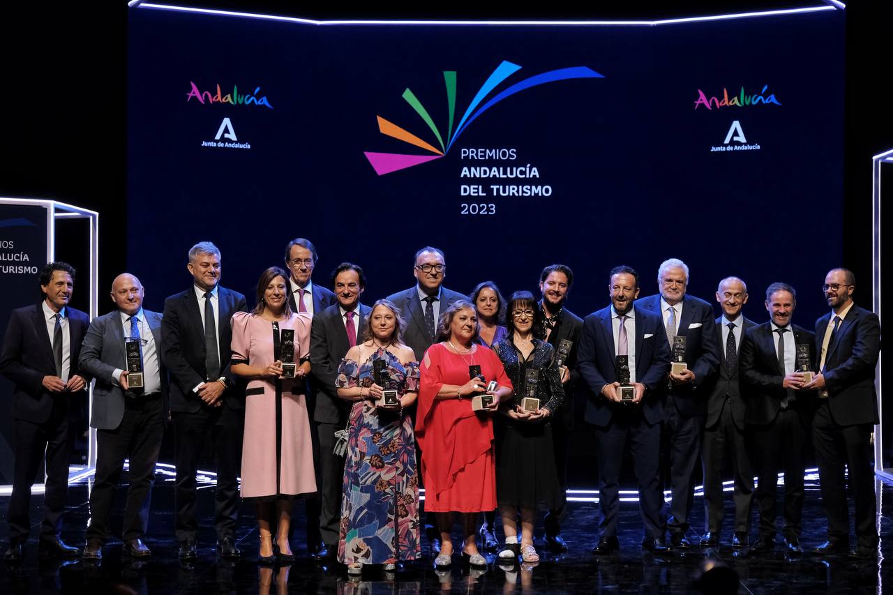 La Consejería de Turismo, Cultura y Deporte ha entregado hoy en una gala en Jaén los Premios Andalucía del Turismo 2023, que este año han reconocido la aportación del cantante y compositor Manuel Carrasco, al Ayuntamiento de Ronda, las Bodegas González Byass, la Casa de Andalucía en Barcelona, los hoteles Valle del Este y Suite Generis, las empresas Nomads Turismo y 1yCeros, a la trabajadora Eva de Dios Martínez y a la empresaria María del Carmen Ángel Úbeda.
