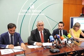 El consejero de Economía y Conocimiento durante la presentación del balance de Andalucía Emprende